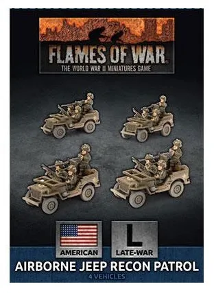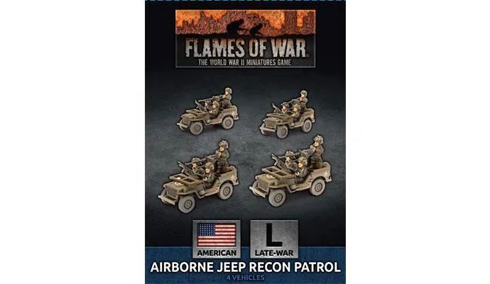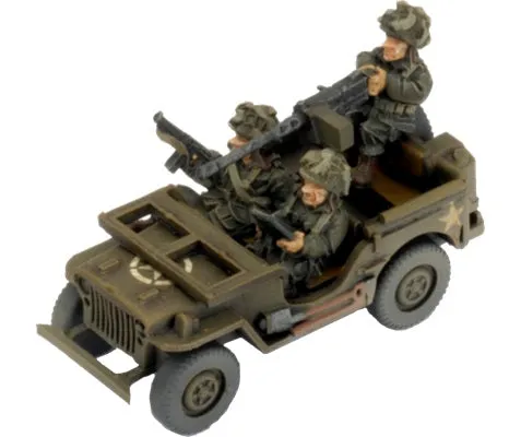 The divisional reconnaissance group has two glider-landed reconnaissance platoons. Equipped with machine-gun-armed jeeps, they are ideal for scouting for enemy counterattacks or as part of a mobile reserve. THIS PRODUCT CONTAINS: 4x Jeep (.50 cal MG) --- These miniatures are supplied unassembled and unpainted