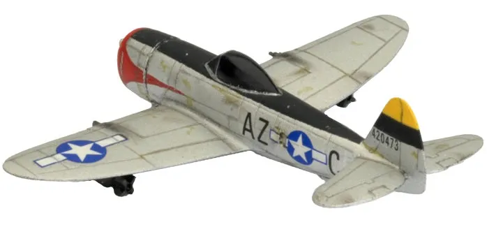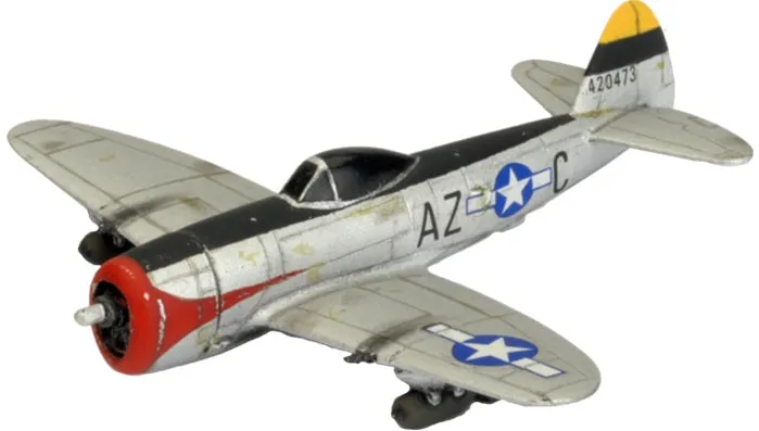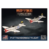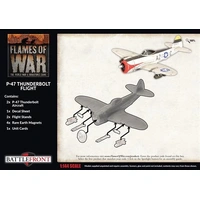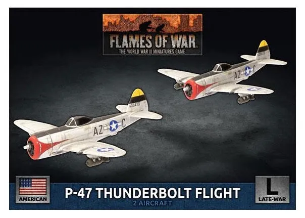 Flames of War: American P-47 Thunderbolt Flight (Late-War) Having swept the Luftwaffe, the German Air Force, from the skies, the Allied air forces have exposed the German Army to our fighter bombers. P-47 Thunderbolts destroy targets using 500lb bombs, a battery of eight .50 cal machineguns, or 5-inch high-velocity anti-tank rockets. This package contains two P-47 Thunderbolt Aircraft, one Decal Sheet, two Flight Stands, four Rare-Earth Magnets, and one Unit Card.