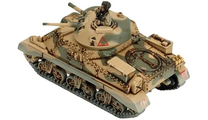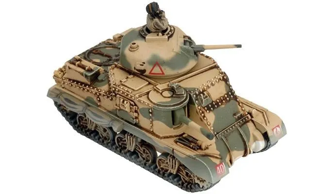British armoured regiments were delighted to receive the new American-made M3 Grant tank, which gave them a tank with a gun as good as those on the German panzers, with armour to match. Rushed into service to meet the urgent need for a heavy 75mm-armed tank it took the Germans by surprise. Its thick armour and powerful 75mm gun are superior to most of the German panzers. The main gun was mounted in a hull sponson because no American tank plants could cast a turret big enough for it. The arrival of the Grant in the Battle of Gazala took the Germans by surprise. Its thick armour and powerful 75mm gun are superior to most of the German panzers. Its only real downside is its height, which makes it a conspicuous target in the desert. The placement of the 75mm gun makes it difficult to conceal the tank in a hulldown position behind terrain. At Alam el Halfa, with time to prepare a static defence, the British were able to partly overcome these difficulties by carefully choosing the placement of each Grant. THIS PRODUCT CONTAINS: 5x Grant (37mm & 75mm) Tanks 1x Decal Sheet These miniatures are supplied unassembled and unpainted