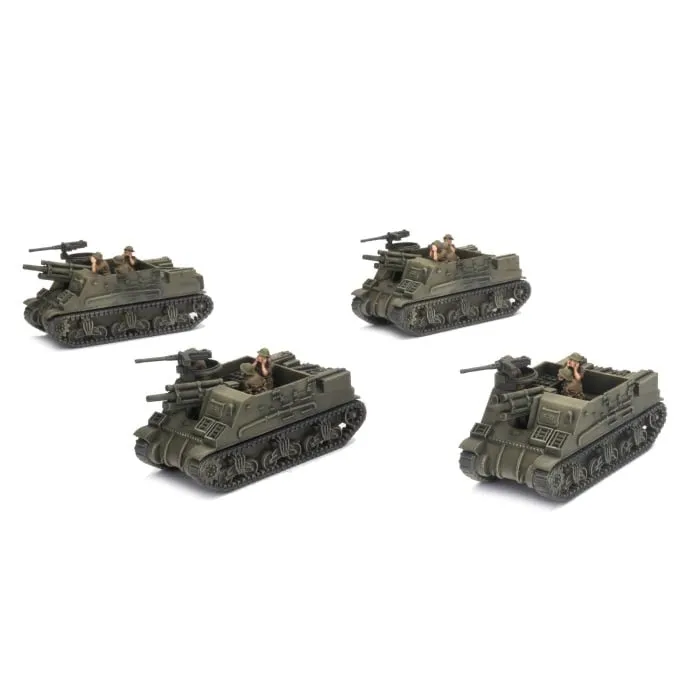 Built on the chassis of the Grant tank, the Priest gives the armoured divisions a mobile artillery piece able to keep up with its tanks during cross-country moves. THIS PRODUCT CONTAINS: 4x Priest (105mm) Self-propelled Guns 1x Decal Sheet --- These miniatures are supplied unassembled and unpainted