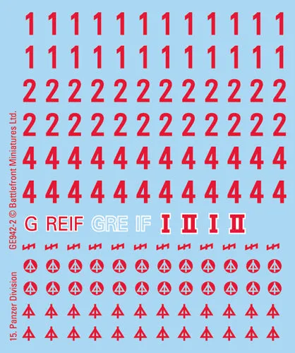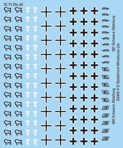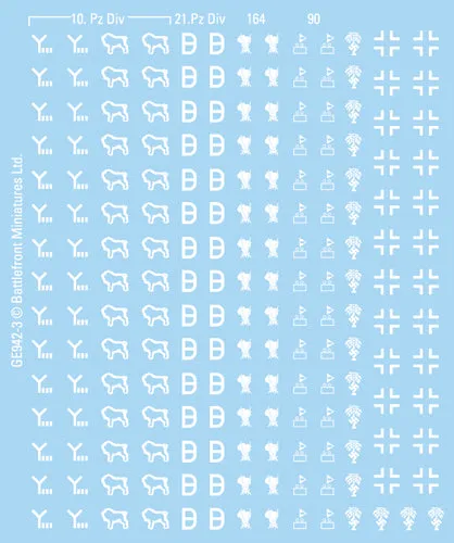 This German decal set covers the forces of the Deutsches Afrikakorps (DAK) and includes divisional insignias, tactical numbers and three different style of Balkenkreuz. It can be used for Early and Mid-War DAK forces. THIS PRODUCT CONTAINS: 4x DAK Decal Sheets