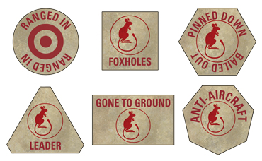Flames of War Desert Rats Tokens British • Package Contents: -2 x Ranged In token -4 x Foxholes tokens -8 x Pinned Down tokens -1 x Leader token -4 x Gone To Ground tokens -1 x Anti-Aircraft token • Package Info: The eyes of the world are on the complex and bloody campaign unfolding in the Western Desert of Egypt and Libya. If the Axis can succeed in pushing the British out of Egypt, there will be nothing keeping them from the rich oil fields of the Middle East, and the strategically vital Suez Canal will open the back door to the Far East. The brave but battered soldiers of the Eighth Army hold the last line of defence against fascist conquest. -Models are supplied unpainted, and require assembly. -Any additional scenery shown, models, paint, or glue is not included. • Product Part Number: BR901 • Flames of War Unit's Country: British • Flames of War Time Period: WWII - Early War
