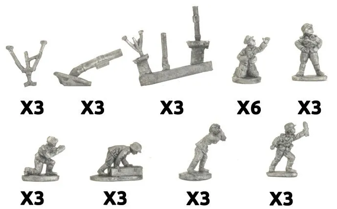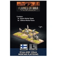 The little Tampella M/35 81mm mortar remains a great support weapon for the infantry. Skilled crews can bring their shells down on the Soviets before they have time to react. The Finnish Tampella 120mm mortars along with those captured from the Soviets provide infantry with heavy firepower. The heavy mortars’ high explosive rounds disrupt Soviet assaults as they advance on Finnish positions. THIS PRODUCT CONTAINS: 3x metal 81mm Mortar Teams 3x metal 120mm Mortar Teams --- These miniatures are supplied unassembled and unpainted