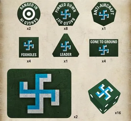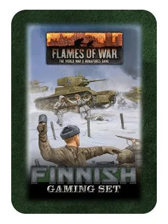 Even though they are toy soldiers, your troops react to heavy fire like real soldiers. Sometimes they get pinned down or bail out of their tanks. They can dig foxholes for protection or go to the ground, hiding from the enemy. Tokens help you keep track of the state of your troops. The Finnish Gaming Set contains 20x fully coloured tokens, 2x objective tokens and 16x dice all inside a collectable-themed tin. THIS PRODUCT CONTAINS: 8x Pinned Down/Bailed Out Tokens 4x Gone To Ground Tokens 4x Foxholes Tokens 2x Ranged In Tokens 1x Anti-Aircraft Token 1x Leader Token 16x Dice 2x Objective Tokens
