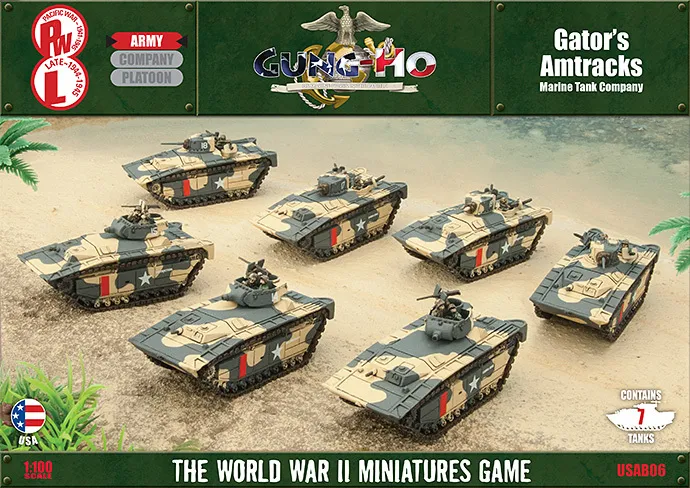 United States Gator's Amtracks USAB06 Flames of War - Battlefront Brand New Contains: 7x 37mm gun barrels 7x .50-cal AA machine-guns 7x LVT(A)4 (75mm) drop-in hull tops 7x LVT(A)1 (37mm) drop-in hull tops 7x LVT Amtank hull 7x LVT hull machine-guns 7x LVT(A)4 (75mm) crew sets 14x LVT(A)1 (37mm) machine-gun turrets 7x LVT(A)1 (37mm) turrets 7x LVT(A)4 (75mm) turrets The LVT(A)1 (37mm) and LVT(A)4 (75mm) gave the the Marines the ability to land tanks capable of knocking out Japanese defences at the same time as infantry. Models supplied unpainted and require assembly. Glue, paint and scenery not included. Product may vary from those shown.