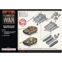 The Panther G is the latest model of the famed Panther tank. The new model has thicker armour and retains the long-barrelled 7.5cm KwK42 gun, which can still penetrate any Allied tank in existence. The balance of an excellent gun, good armour, and good mobility makes the Panther one of the best tanks of the war. The range and armour of the Jagdpanther outclassed most tanks the enemy could field. When used with proper tank-hunter tactics, they could crush any enemy armour thrusts. With the enemy tanks at an extreme disadvantage, the task of dealing with the Jagdpanther often fell to the Allied fighter-bombers and infantry. THIS PRODUCT CONTAINS: 5x Panther (late 7.5cm) Tanks or Jagdpanther (8.8cm) Tank-hunters 1x Decal Sheet --- These miniatures are supplied unassembled and unpainted