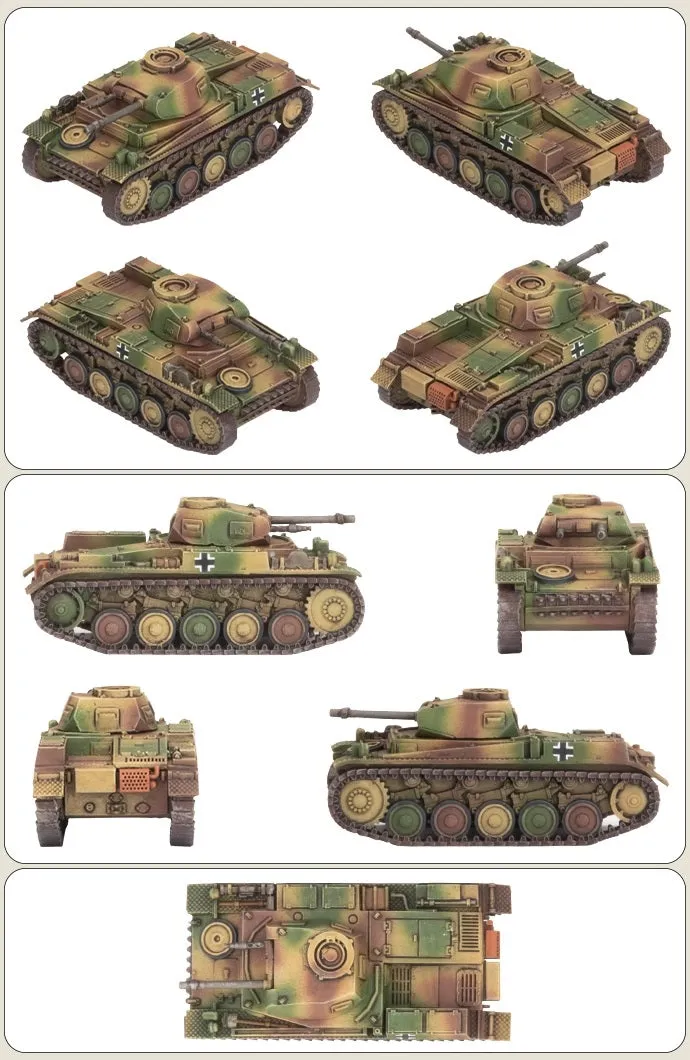 The Panzer II tank has battled on through the entire war, first as a frontline tank, then as a scouting tank, and now in 1945 it serves as a training tank, mostly utilised for driver training. However, the better equipped training battalions now find themselves thrown into the battle to defend Germany. The Panzer II's 2cm autocannon may not be ideal for taking out enemy medium tanks, but is more than enough to knock out their light vehicles such as half-tracks and armoured cars. THIS PRODUCT CONTAINS: 3x Panzer II (2cm) Tanks --- These miniatures are supplied unassembled and unpainted