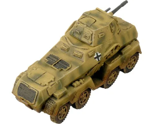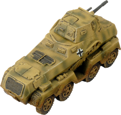 The Sd Kfz 231 eight-wheeler armoured car was bigger and better armoured than the small Sd Kfz 222, allowing it to carry its own radio. This made it ideal for longer-ranged patrols deep behind enemy lines. THIS PRODUCT CONTAINS: Contains: 4x resin and metal Sd Kfz 231 (2cm) Armoured Cars --- These miniatures are supplied unassembled and unpainted