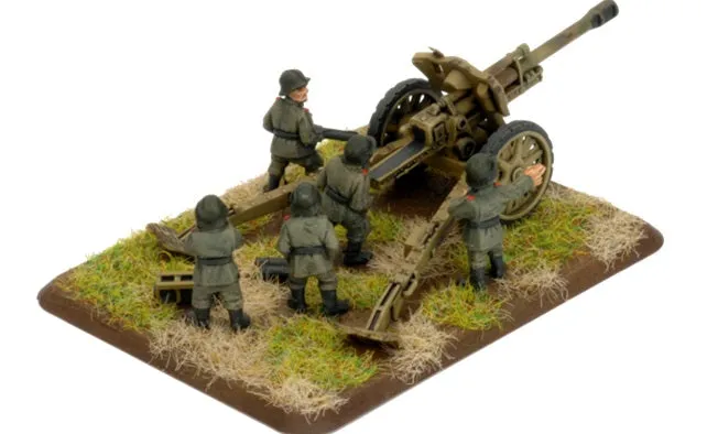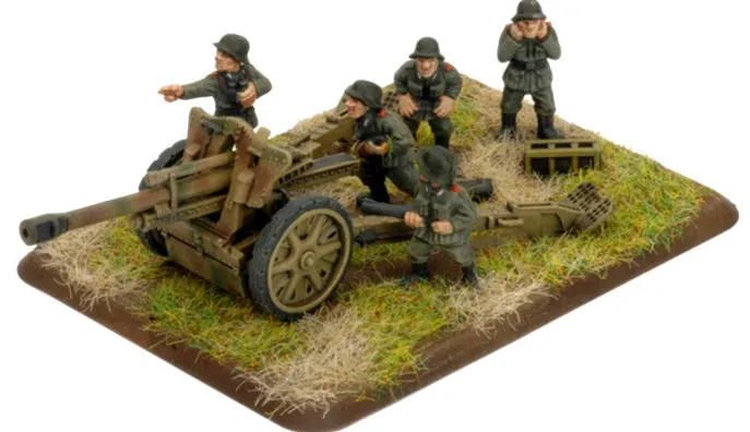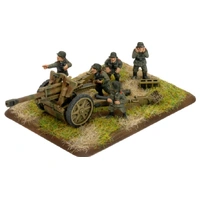 The 10.5cm leFH 18 light field howitzer's main mission was to support German attacks and to shatter enemy counterattacks before they reached their objective. They also provided a base of fire in a last-ditch line of defence. The 10.5cm leFH 18 howitzer was introduced into service with the German army in 1935 and continued to be used throughout the war. In 1940 a more powerful charged round was introduced to increase the howitzer’s range out from 10,675 to 12,325 metres. To help the recoil mechanism to cope with the increased recoil a muzzle brake was added to the end of the barrel. Though the 10.5cm leFH 18 howitzer is a reasonably modern design is was still very heavy and all but impossible for the crew to move quickly, and even then not without the aid of a tractor of limber team. THIS PRODUCT CONTAINS: 4x 10.5cm Howitzer Teams --- These miniatures are supplied unassembled and unpainted