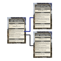 Bloody Omaha Ace Campaign (FW262B) Contains 18 Story Cards, ten Side Mission Cards, 16 Ace Cards, 20 Reward Cards and one Ace Campaign Rule booklet. What Is Bloody Omaha? Bloody Omaha is the first in a series of Ace Campaigns, a narrative-driven system of Flames Of War battles. Ace Campaigns are extremely flexible in allowing players to tailor their campaign to fit their playgroups needs. There are three different modes that you can play the campaign in: Story Mode, Extended Mode, and Aces Mode. Story mode is your shortest campaign that only uses the Story and Reward cards, while Extended allows you to play longer campaigns by adding in side missions. The Aces mode can be used with Story Mode or Extended Mode an allows players to create their own unique commander with special abilities that will give them an edge during the course of the campaign.