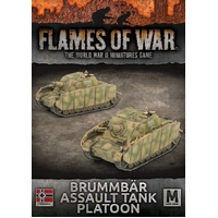 Flames of War's Brummbar Assault Tank Platoon Package Contents: - 2 Resin and Metal Brummbar Assault Tanks - 1 Plastic Tank Commander Sprue - 1 Decal Sheet - 1 Unit Card Package Info: The Brummbar's mission is to blast an enormous hole in the enemy's infantry and gun positions. To do this without being knocked out by enemy anti-tank guns, the Brummbar has over 100mm (4") of frontal armor. The tank's 15cm assault howitzer will have no problem shattering enemy fortifications. This is represented by its Brutal rating and AUTO firepower when used directly against dug-in enemy units. - Product is for use in the Flames of War Miniature tabletop game. - Models are supplied unpainted and require assembly. - Any additional scenery shown, models, paint, or glue is not included. Product Part Number: GBX128 Flames of War Unit's Country: German
