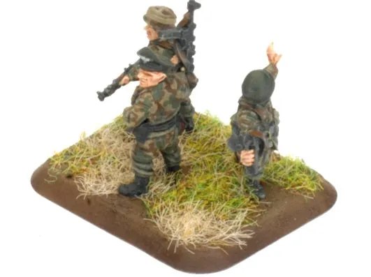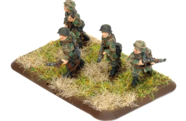 While Allied air superiority prevents the Fallschirmjäger (pronounced fal‑shirrm‑year‑ga) from swooping from the sky like the eagle emblazoned on their badge, these elite troops still form the bulwark that repeatedly denies the Americans critical positions such as Carentan and St. Lô, delaying their breakout for critical weeks. Fallschirmjäger rifle platoons are larger than normal rifle platoons to allow for expected parachuting casualties on landing. This added manpower gives them greater resilience in prolonged ground operations. The esprit de corps of the Fallschirmjäger together with their extra team per squad make them the toughest and most feared German light infantry. THIS PRODUCT CONTAINS: 2x Formation Command MP40 SMG Teams 2x Unit Leader MG42 & K98 Rifle Teams 18x MG42 & K98 Rifle Teams 4x Panzerschreck Anti-tank Teams --- These miniatures are supplied unassembled and unpainted