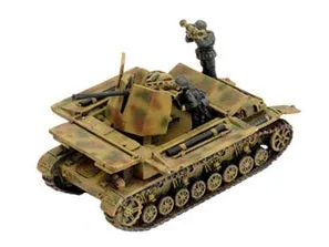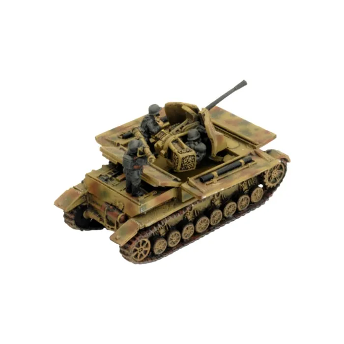 Recognising the need for something heavier than the light 2cm, the Germans have started building a self-propelled 3.7cm Flakpanzer (anti-aircraft tank) on the Panzer IV chassis. The Flakpanzer IV is nicknamed ‘Möbelwagen’ or ‘Furniture Van’ for it’s slab-sided appearance until the armoured shields are folded down to give its 3.7cm AA gun an all-round field of fire. The tank chassis gives the Möbelwagen the mobility to keep up with the panzers, while the 3.7cm gun gives it the punch to bring down any aircraft. THIS PRODUCT CONTAINS: 4x resin and metal Möbelwagen (3.7cm) Tanks --- These miniatures are supplied unassembled and unpainted