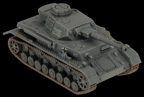 By 1942, Panzer IV medium companies were a mix of short and long barrelled tanks. As more Soviet T-34 tanks began to show up on the battlefield, the older short barrelled Panzer IVs began to be pushed into an auxiliary role, supporting the more powerful long-barrelled tanks with valuable artillery fire and smoke screens. THIS PRODUCT CONTAINS: 5x Panzer IV Tanks 1x Decal Sheet --- These miniatures are supplied unassembled and unpainted