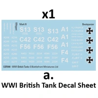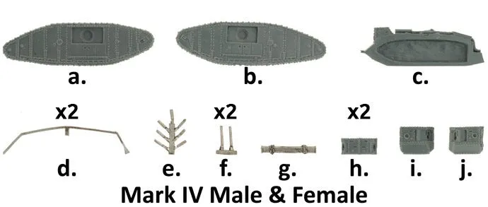These tenders had square mild steel sponsons which easily distinguished them from the combat tanks. THIS PRODUCT CONTAINS: 1x resin and metal Mark IV Male or Female Tank 1x Decal Sheet --- These miniatures are supplied unassembled and unpainted