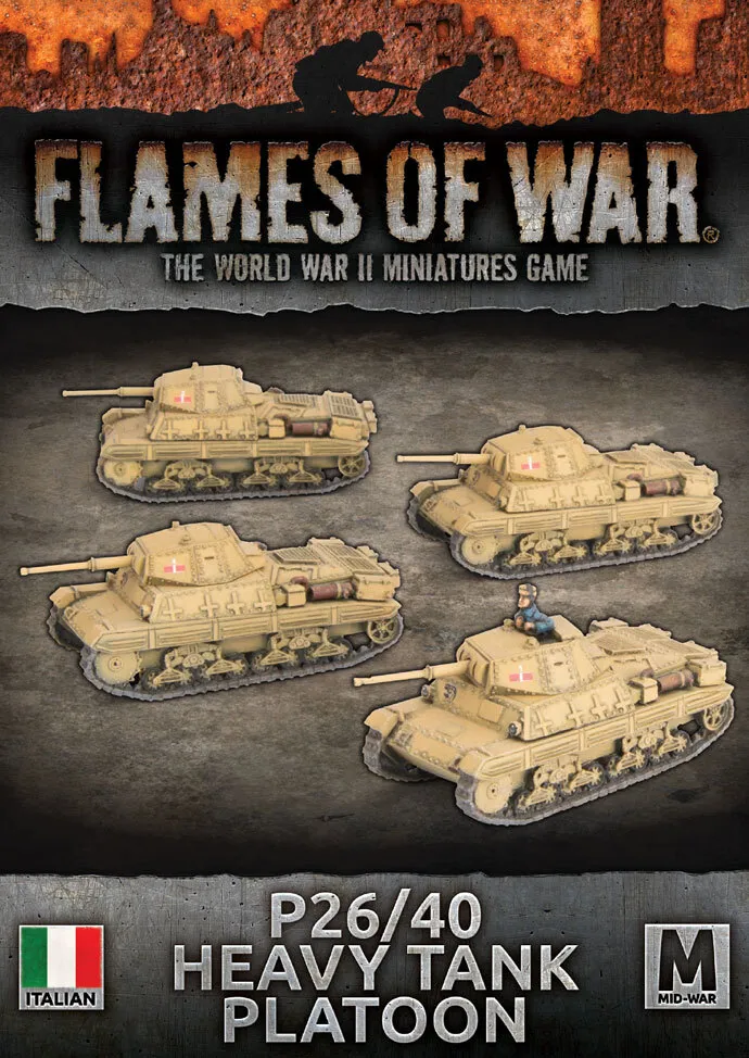 By Italian standards, the P26/40 was a heavy tank, nearly twice the weight of the standard M14/41 medium tank. The P26/40 carried a bigger gun, had more armour, and was faster than the medium tanks putting it a whole generation ahead in tank design, and on a par with the Americans, British, and Germans. The P26/40 was the only Italian tank capable of engaging the British and American Grant and Sherman tanks in a frontal fight. Instead of having to rely on sheer bravery to close with the enemy for flank shots, the P26/40 had the capability of engaging from the advantage of defensive positions.anks would have arrived in Africa as the Second Battle of El Alamein began. THIS PRODUCT CONTAINS: 4x resin and metal P26/40 (75mm) Tanks 1x 8 Million Bayonets Dice --- These miniatures are supplied unassembled and unpainted