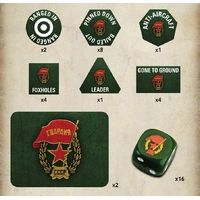 Even though they are toy soldiers, your troops react to heavy fire like real soldiers. Sometimes they get pinned down or bail out of their tanks. They can dig foxholes for protection or go to the ground, hiding from the enemy. Tokens help you keep track of the state of your troops. TheSoviet Guards Gaming Set contains 20x fully coloured tokens, 2x objective tokens and 16x dice all inside a collectable-themed tin. THIS PRODUCT CONTAINS: 8x Pinned Down/Bailed Out Tokens 4x Gone To Ground Tokens 4x Foxholes Tokens 2x Ranged In Tokens 1x Anti-Aircraft Token 1x Leader Token 16x Dice 2x Objective Tokens