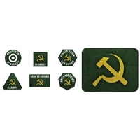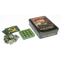 Even though they are toy soldiers, your troops react to heavy fire like real soldiers. Sometimes they get pinned down or bail out of their tanks. They can dig foxholes for protection or go to the ground, hiding from the enemy. Tokens help you keep track of the state of your troops. The Soviet Gaming Set contains 20x fully coloured tokens, 2x objective tokens and 16x dice all inside a collectable-themed tin. THIS PRODUCT CONTAINS: 8x Pinned Down/Bailed Out Tokens 4x Gone To Ground Tokens 4x Foxholes Tokens 2x Ranged In Tokens 1x Anti-Aircraft Token 1x Leader Token 16x Dice 2x Objective Tokens