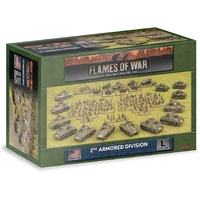 Flames of War: American 2nd Armored Division (Late-War) The 2nd Armored Division was raised on 15 July 1940 under the command of Major General Charles L. Scott. Later that year Scott was promoted and com-mand of the division fell to one Brigadier General George S Patton. The division trained hard, prompting Patton to boast that the 2nd Armored Division would be ‘Hell on Wheels’ when it met the enemy. The nick name stuck. Package Info: - Product is for use in the Flames of War miniature table top game. - Models require assembly. - Any scenery, paint, or glue shown is sold separately. Country/Faction: USA Time Period: Late-WWII Product Part Number: USAB13