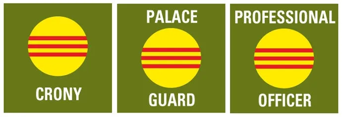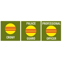 A set of 12 patronage tokens for your games of Flames of War: Vietnam . Contents: 4 Crony Tokens 4 Palace Guard Tokens 4 Professional Officer Tokens