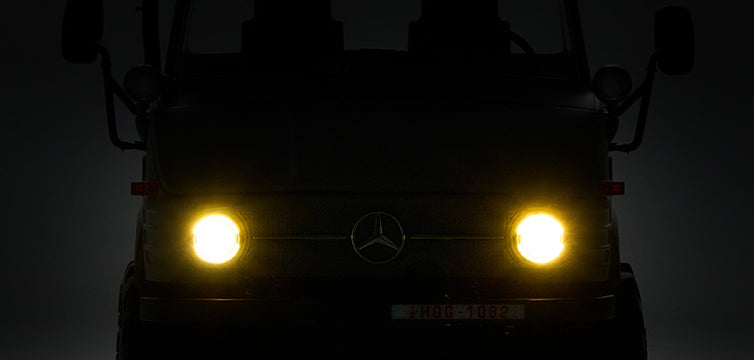 This Unimog features a delicate wood real car cargo box floor and three-sided door panel, each of which is carved with delicate texture, as if simulating the real wood texture. The rear cargo box design is unique, it not only makes the traditional flip-up function, we have given this model more possibilities, it has a surprising three-sided opening function. The side and rear opening modes make it easy to enter and exit both large and small goods, making its practicality maximized.