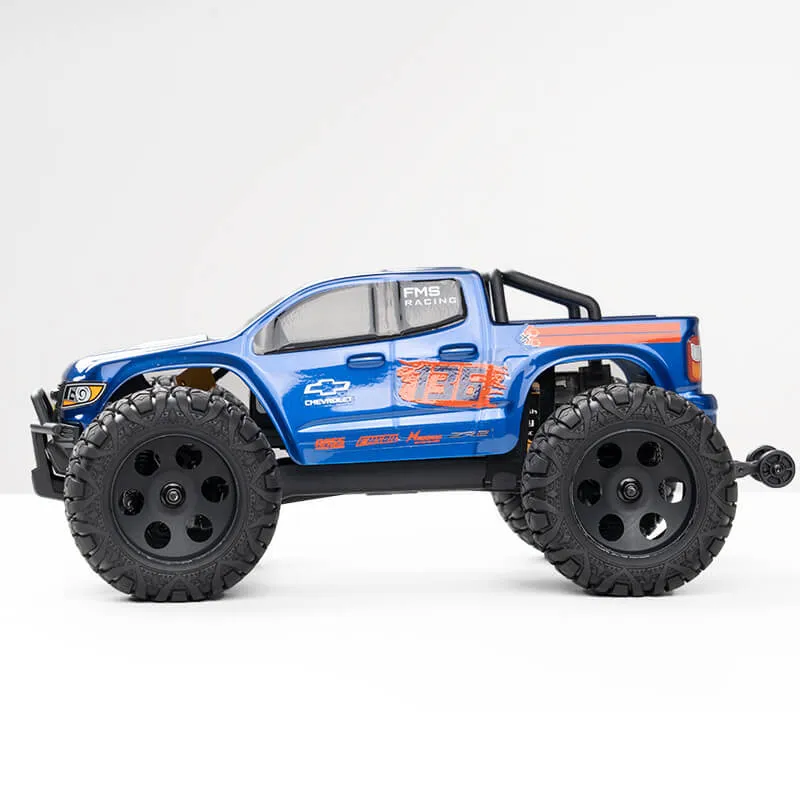 Embark on off-road excitement with FMT24, the new series from FMS, authorized by General Motors. The 1/24 Chevrolet Colorado RC model impeccably mirrors the full-sized prototype's performance. With a robust nylon chassis, mid-mounted power unit, and a 2-speed gearbox, the Colorado offers seamless control and a sleek design. The powerful brushed motor, universal joint drive shaft, and large, shock-absorbing tires ensure an exhilarating off-road experience. The FMT24 Chevrolet Colorado is ready to hit the road, embracing the wild air of this brand-new off-road adventure.