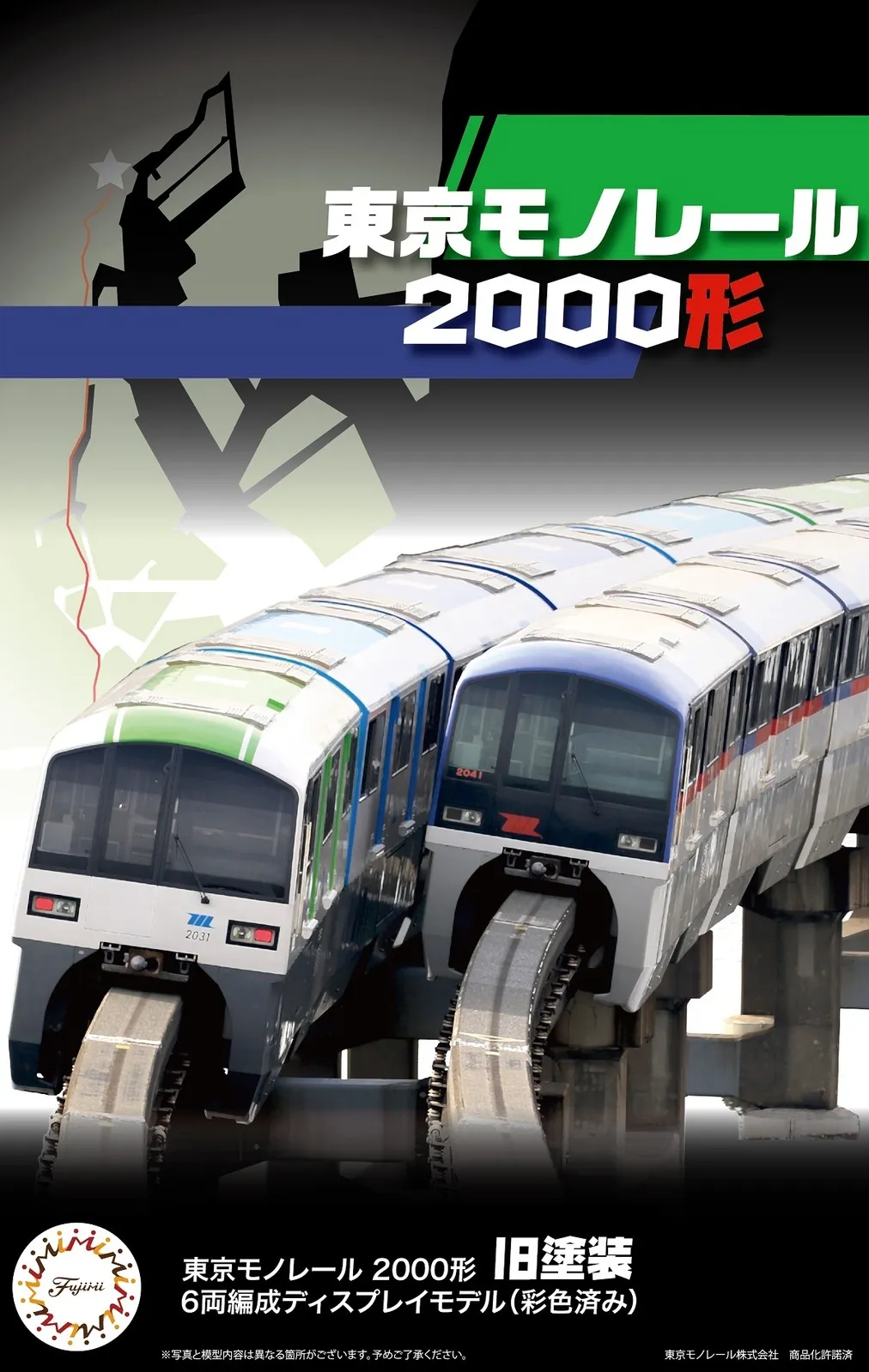 SKU: FUJ91029 | Brand: Fujimi | Product: Fujimi 1/150 Tokyo Monorail Type 2000 Old Painting Six Car Formation (6-Car Set) (ST-17) [91029] Assembly-required plastic scale model. Paints and adhesive sold separately. Reproduces the Tokyo Monorail Type 2000 in its original livery from its introduction as the first train equipped with VVVF inverter control technology. The complete six-car configuration assembles with pre-painted and printed components. Display track and pier sections included. Construction Features: - Press-fit assembly design minimizes adhesive application points - Leading car front end uses snap-fit connections to prevent paint damage from excess adhesive - Reduced part count versus Type 1000 while maintaining visual accuracy - Front and middle cars feature divided dolly sections for simplified assembly while preserving motor and tire details - Separate motor (M) and trailer (T) dolly configurations - Leading car includes ATC/TD antenna; adjacent cars feature antenna-free design for accurate differentiation