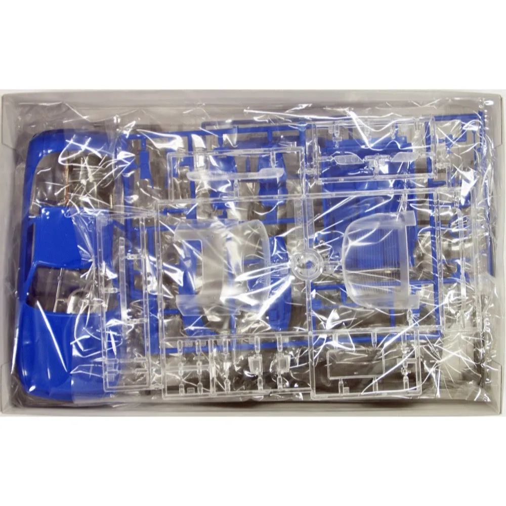 Completely unique and fictional car kit of a "merged" Nissan Sylvia and 180SX, to create the legendary "Syleighty." (In the story, two crashed cars are bought for parts and combined into one new car). Wheels turn and steer after completion. Body parts molded in blue.