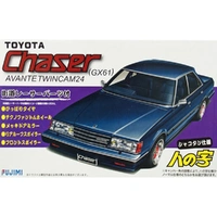 Fujimi's Toyota GX61 Chaser Avante Twincam 24 (GX61) kit can be built as either a normal version or a street-racing customized "shakotan" (low-rider) "hachi no ji" suspension version. "Hachi no ji" refers to the cambered-out rear suspension, the shape of which resembles the Japanese character for the number eight, which is "hachi." Also includes "hippari" (stretched) tires--tires that are too narrow for the wide wheels they are stretched over--plus Techno Phantom wheels, front and rear spoilers, and chrome rearview mirrors.