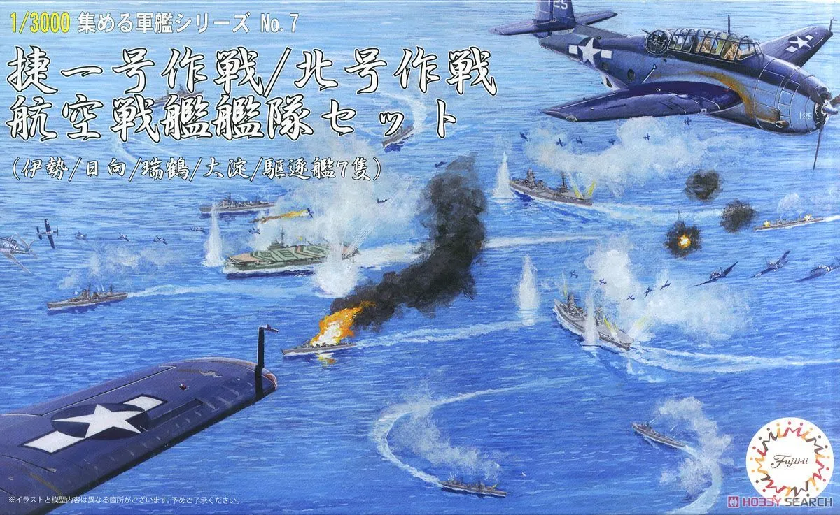 Fujimi Gunkan 07 401416 Operation Sho Ichigo / Kita Aviation Battleship Fleet Set Includes - Ise, Hyuga, Zuikaku, Oyodo and Destroyer 7 vessels Specification - Scale:1/3000 - Item Number: FUJ40144 - Brand: Fujimi This is a scale plastic model kit, assembly required. Paints and glue not included.