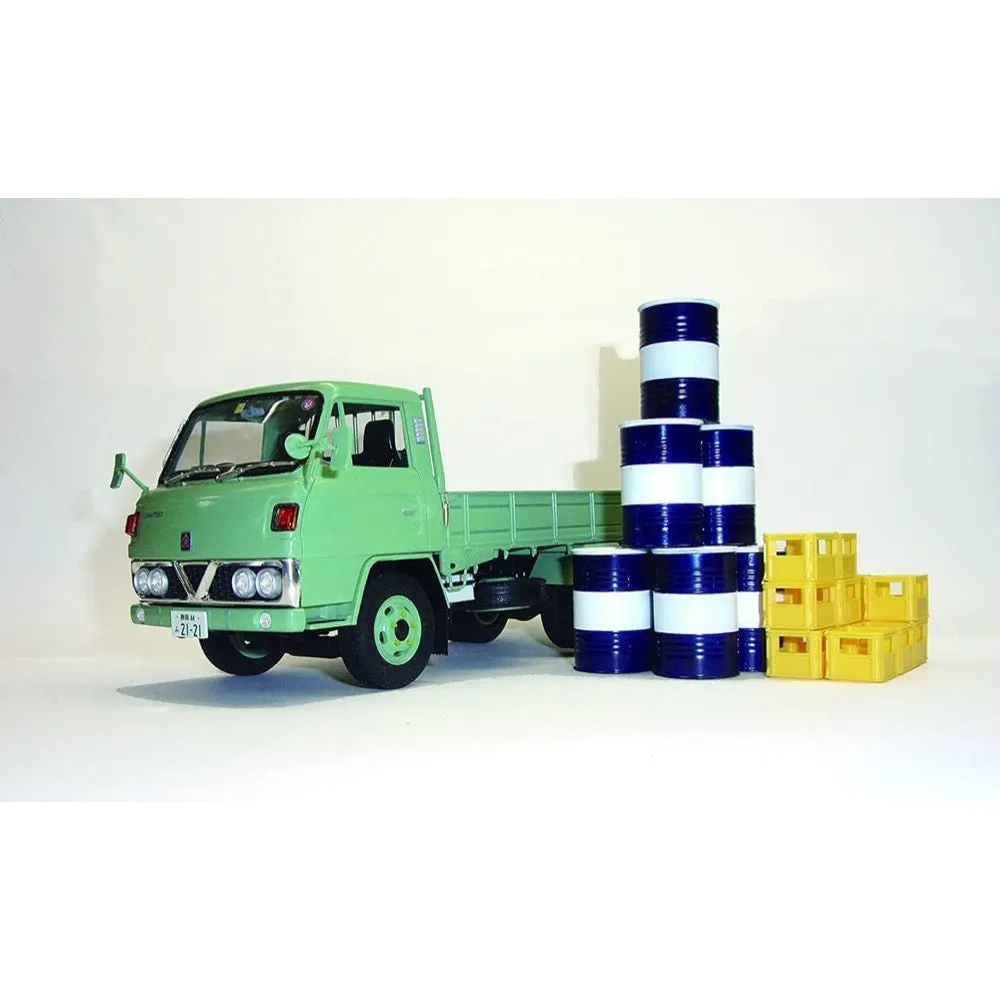 Here's the fourth kit from Fujimi of the 1975 Mitsubishi Fuso Canter T200 truck, this time with a simple flat bed cargo area! Features - The cab interior, chassis, and suspension are incredibly detailed, but the engine is represented as a single piece, showing only detail as seen from below (the hood of the cab does not open). - A sheet of rubber and a template are included to make the front and rear mudflaps, and injection-molded parts are molded in gray, black, and clear. - Chrome-plated detail parts are also included. - A nice feature is the the inclusion of eight big drum cans and 12 bottle cases (molded in yellow) to stow in the cargo area (drum cans require assembly; bottle cases are molded in one piece). - Includes decals for the license plates, instrument panel gauges, and exterior trim. A very nice model of a hard-working Japanese truck!