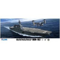 Description This is an injection-plastic ship model kit. Fujimi has collaborated with the U.S. military to reproduce the latest flight deck markings for the landing ship of the Osprey VTOL aircraft! The most recent deck markings, including the 5th landing zone, are included, and it's possible to reproduce the differences like the dotted line on the elevator frame for weapons mounted on the front. Both elevators can reproduce the descent state, and the bridge is made as a single piece using a slide mold. Includes ship-mounted helicopters SH-60J and K type, and MCH-101; land deployment UH-60J and an Osprey are also included. The first release of this kit also includes prepainted crew figures!  [Mold Color] : Gray, black, clear, white [Includes] : Decals, photo-etched parts