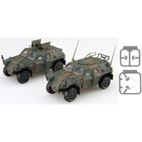 This model kit from Fujimi provides you with parts to build two vehicles! You can build one as the squadron commander version, and the other with the 5.56mm MINIMI. Two smoke grenade launchers are included as new dedicated parts. Decals are included too