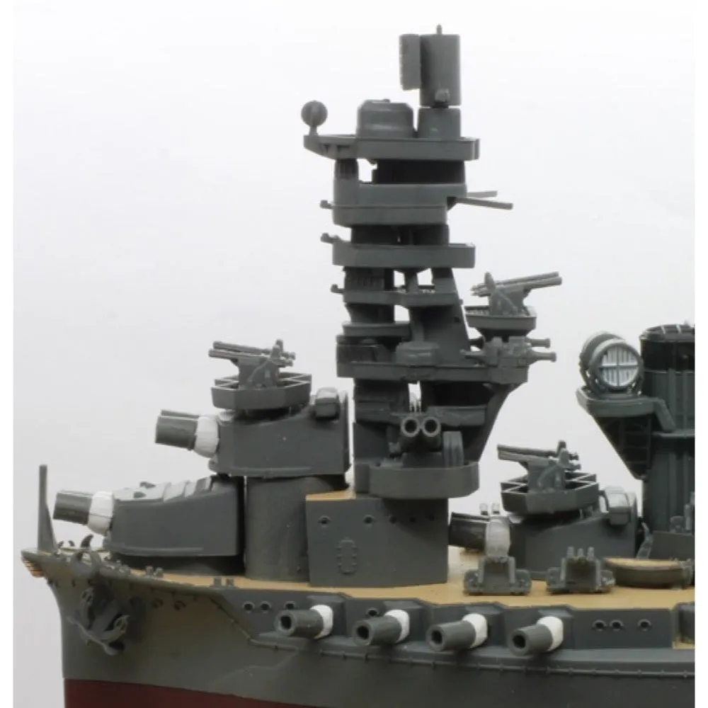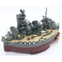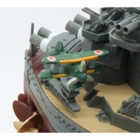 Of the 12 battleships that fought in the Pacific War, the flagship of the Fuso class, which underwent multiple refits, the Battleship Fuso, has been commercialized following the Yamashiro! The orientation of the third turret, which caused the difference in the bridge shape, is of course reproduced in the opposite direction to that of the Yamashiro. In addition to the main body, realistic stickers featuring the wooden deck and battle flag, as well as decals for those who prefer to paint, are included. One A6M Zero seaplane observation aircraft is included, deformed to match the ship. This adorable Chibi-Maru kit of the Fuso is a waterline-style kit, and comes with foil stickers for the markings. It's molded in gray, dark green and red plastic.
