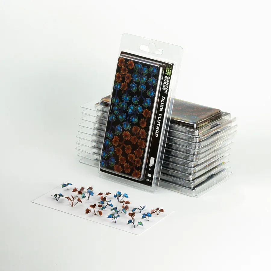 Alien flytraps (named after the earth Dionaea plants) are giant bright-blue-coloured glowing carnivorous plants, becoming reddish-brown and poisonous with maturation.