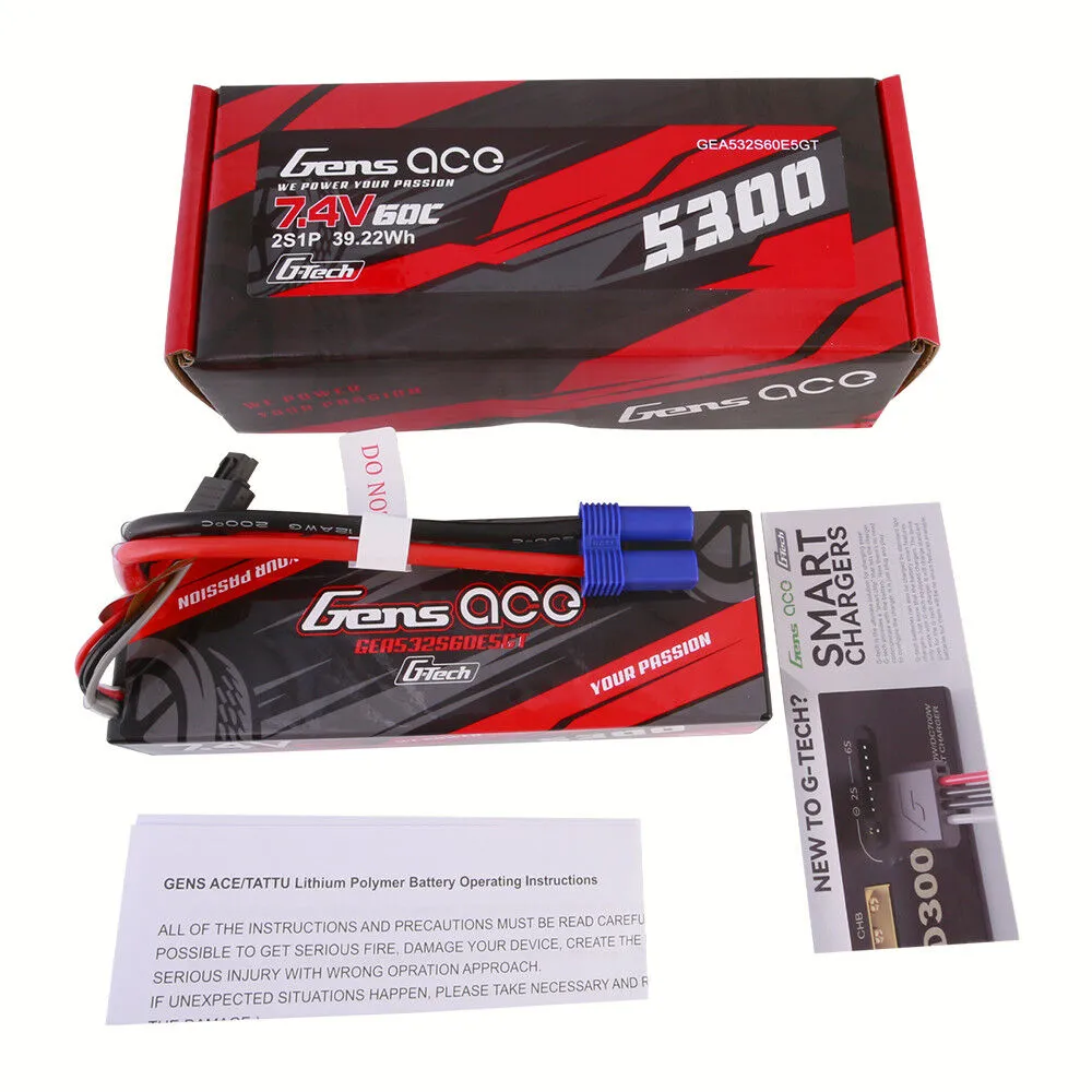 Gens Ace G-Tech 2S 5300mAh 60C 7.4V Hardcase/Hardwired Lipo Battery (EC5)