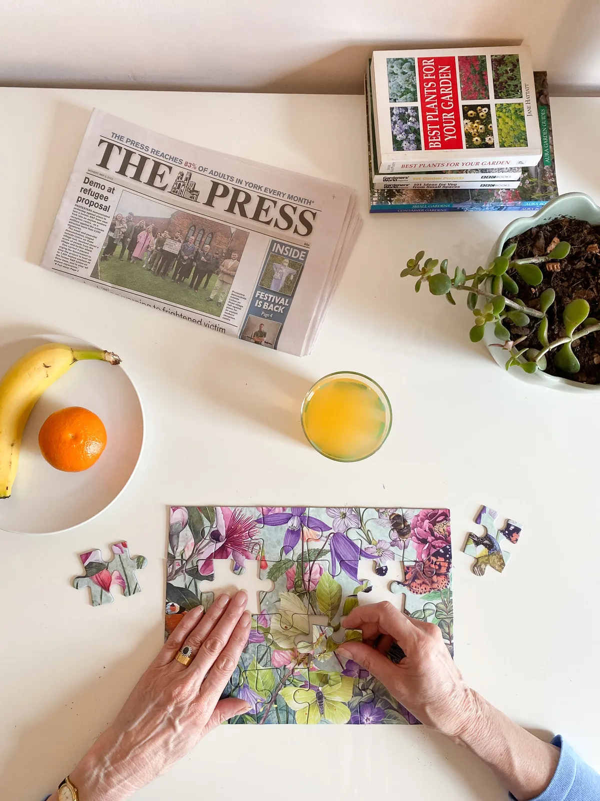 THE JIGSAW We proudly present The Garden, a 24 XXL piece jigsaw puzzle which is part of our special Piecing Together collection. These jigsaws are designed to bring the joy and satisfaction of puzzling to those living with dementia, limited fine motor skills or visual impairments. The Garden is a beautiful 24-piece puzzle by Fiona Osbaldstone, that shows the vibrant flora, fauna and wildlife that can be found in a garden. This 24 XXL Piecing Together jigsaw puzzle was developed with Dr. Zoe Wyrko; Consultant Geriatrician and member of the expert team on Channel 4's award-winning TV show, Old People's Home for 4 Year Olds. THE DETAILS - High quality 24 XXL piece jigsaw puzzle - Developed for individuals with dementia, visual and motor impairments - Included in the box is a handy print of your puzzle - Made in the UK & Europe from 100% recycled cardboard - Completed puzzle size: 28.5cm x 20.5cm | 11 x 8 inches - Developed with Dr. Zoe Wyrko, Consultant Geriatrician and member of the expert team on Channel 4's award-winning TV show, Old People's Home for 4 Year Olds - Artist credit: Fiona Osbaldstone MAKING A DIFFERENCE A Double Celebration! We are beyond thrilled to announce that Gibsons Games won the prestigious King’s Award for Enterprise for Sustainable Development , a true testament to our dedication to creating a greener future! But that’s not all - we’re also proud to be a certified B Corp , committed to using business as a force for good. This incredible recognition reinforces our mission to make a lasting, positive impact on the planet and our communities. Thank you for being part of this journey - we couldn’t have done it without you!