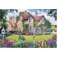 THE JIGSAW A merry gardener earns his keep in this charming 4 x 500 piece multi-box jigsaw set by Trevor Mitchell. The residents of the local village certainly keep Colin the gardener busy! Whether it’s trimming the Royal Oak’s flower baskets, repotting at Dottie’s Tearoom or mowing the vicarage lawn, Colin has a cheery smile for every passer-by. Each 500 piece jigsaw puzzle in this multi-box has been painted by the talented artist Trevor Mitchell. THE DETAILS - High quality set of four 500 piece jigsaw puzzles - Made in the UK & Europe from 100% recycled cardboard - Completed puzzle size: 48cm x 34cm | 19 x 13 inches - Artist credit: Trevor Mitchell MAKING A DIFFERENCE A Double Celebration! We are beyond thrilled to announce that Gibsons Games won the prestigious King’s Award for Enterprise for Sustainable Development , a true testament to our dedication to creating a greener future! But that’s not all - we’re also proud to be a certified B Corp , committed to using business as a force for good. This incredible recognition reinforces our mission to make a lasting, positive impact on the planet and our communities. Thank you for being part of this journey - we couldn’t have done it without you!