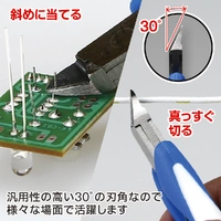 Cut all sorts of wire materials! Double-edged general-purpose nipper for diverse uses High durability and easy grip design. Craft Grip Series lineup is available for various applications. Features an easy grip design fit to hands. Grip shape ensures a stable grip and hurts hands less, even with long hours of use. A three-piece sandwich (three-piece laminated) structure is adopted. Twisting force is less likely to occur during cutting, resulting in less rattling. Leaf springs with moderate elasticity and high durability. A stopper also helps prevent the grips from over-opening. General Purpose Nipper is a double-edged all-purpose nipper designed for diverse uses. Cutting capacity: Brass wire imensions: Total length: approx. 120 mm, Weight: approx. 60 g ・Cutting capacity: Brass wire ・DO NOT USE FOR STAINLESS WIRE OR PIANO WIRE ・Material: Mechanical-structure carbon steel (made by Kobe Steel, Ltd.) ・Spring structure: Leaf spring ・Handle coating: TPR ・Blade hardness: ≧ HRC54