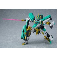 The Shinkalion E5 Hayabusa Mk II from "Shinkansen Henkei Robo Shinkalion" returns to the MODEROID plastic model kit lineup! Its unique appearance from the show has been carefully reproduced in model-kit form; it features a variety of joints for posability after assembly, and it comes with the Kaisatsu Sword and Sword Case. Interchangeable chest area parts allow you to display it its Dual Gran Cross firing mode! It's molded in color and some parts are pre-painted; decals are also included, so all it takes is simple assembly to recreate this awesome mecha. (Please note that this model cannot transform into Shinkansen mode.)
