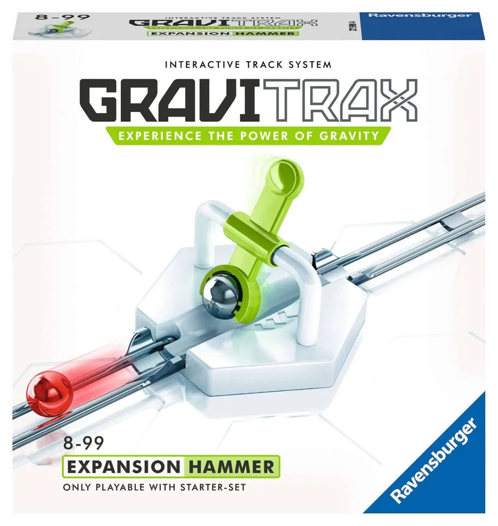 Hit your ball with the hammer for more power and to make it travel further. The GraviTrax track system makes experiencing gravity fun! The track can be infinitely extended with various add-ons for endless building and racing enjoyment! Will the hammer get your ball to the finish?