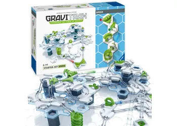 Create your own action-packed marble run obstacle course with this interactive GraviTrax Speed Set construction toy for kids The GraviTrax Speed Set includes height tiles, turns, tunnels, tracks, and 4 different accessories for endless building activities to do on your own or in a group This 185-piece STEM toy offers a screen-free activity that fosters problem solving, creativity and experimentation for kids ages 8 and up Design, build and race the marbles through your own obstacle course tracks and use gravity, magnetism, and kinetics to propel them to the finish.