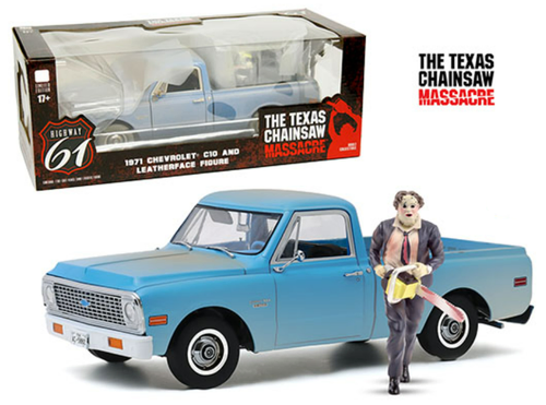 Scale: 1:18 - Make/Model : 1971 Chevrolet C-10 - Features: Texas Chainsaw Massacre w/Leather Face - Manufacturer: Highway 61