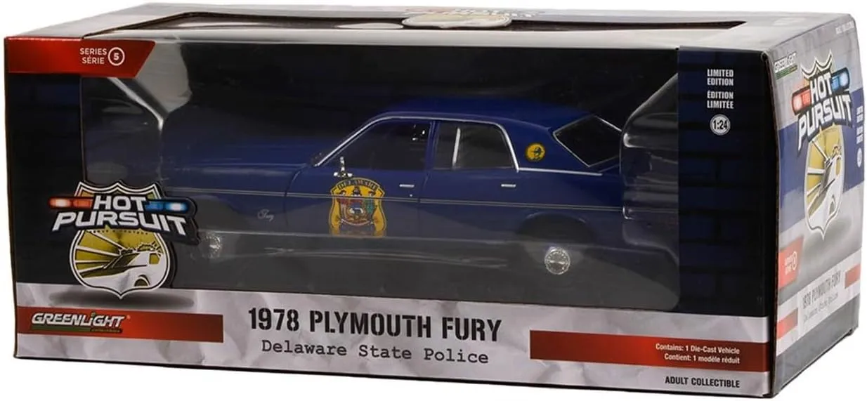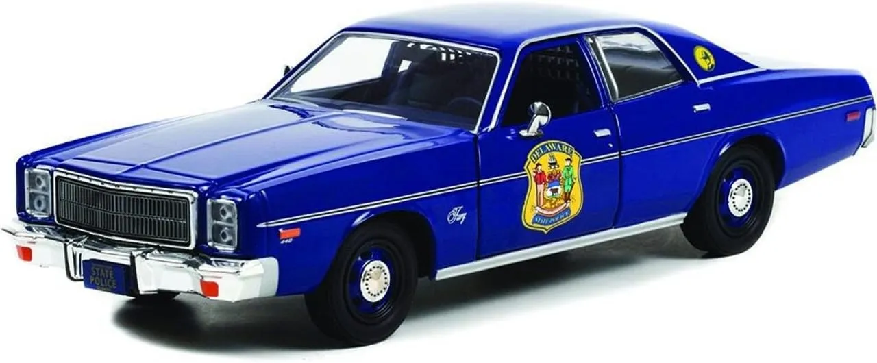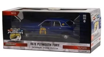 Scale: 1:24 - Make/Model : 1978 Plymouth Fury - Details: "Delaware State" Police Car - Manufacturer: Greenlight
