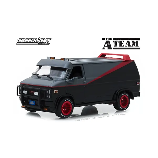 1:24 scale model of 1983 GMC Vandura from the TV series "The A-Team" (1983-87) Opening doors Real rubber tyres Detailed interior and exterior Die cast vehicle from Greenlight