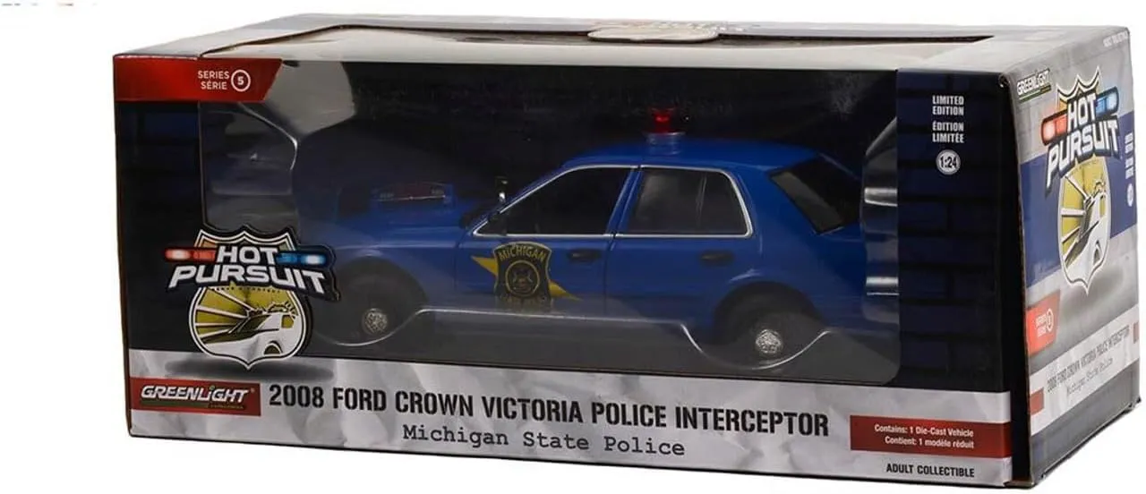 Greenlight 1/24 Hot Pursuit 2008 Ford Crown Victoria Police Interceptor Michigan State Police