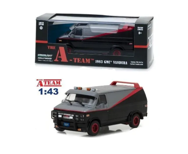 Add some class to your room with this legendary hollywood car from the 80s. This 1983 GMC Vandura is a 1/43  scale diecast model replica. It comes in black and features free wheel action. It's a brilliant model for any hollywood car collection, and just right for die-hard GMC enthusiasts!