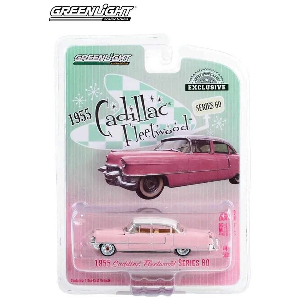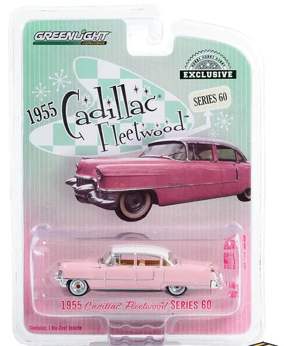 Greenlight 1/64 1955 Cadillac Fleetwood Series 60 - Pink with White Roof (Hobby Exclusive) Diecast