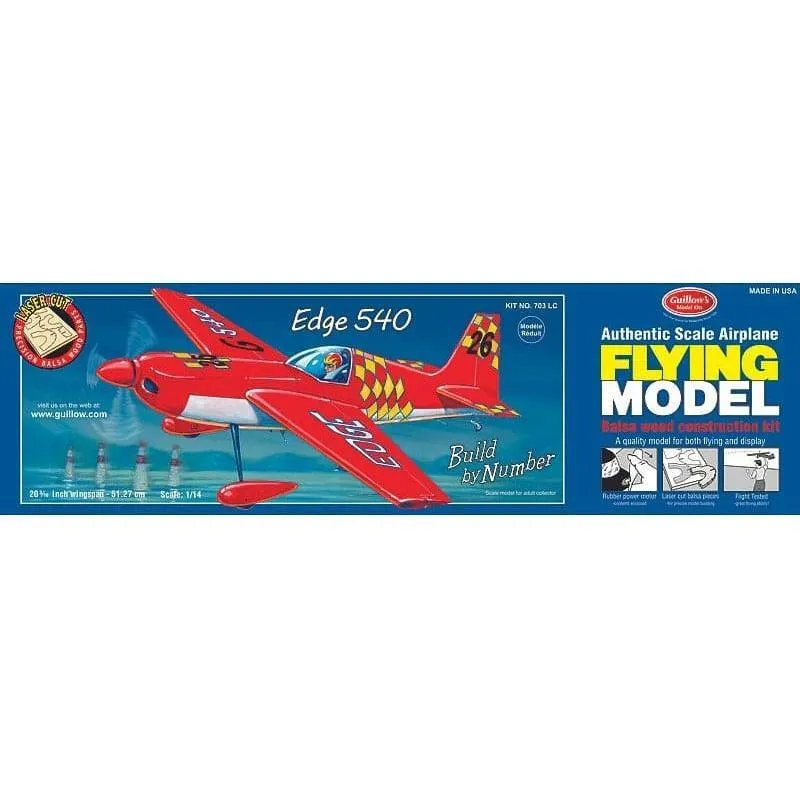 The Edge 540 is the leading aerobatic aircraft that meets or exceeds the performance of any other aerobatic aircraft available and because of this it is a widely used at air shows in the U.S. and abroad. This Guillow creation is a faithful replica of the real plane is a beautiful model that is a great flying kit, designed for lightweight, ease of assembly and flight stability.