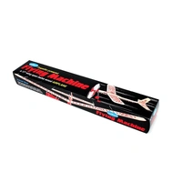 A sleek long distance flyer packaged in a shrink wrapped full color box. Plastic propeller, nose bearing and wheels. Two rubber motor bands provided.